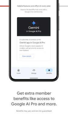 Когато нуждите ви от пространство нарастват, Google One предлага идеалното решение за разширяване на възможностите. Като член на Google One, вие получавате достъп до много повече място за съхранение, пригодено да побере всичките ви важни спомени, лични проекти и дигитални файлове. Изберете плана, който най-добре отговаря на вашите изисквания, и се насладете на изобилие от пространство, гарантиращо, че никога няма да ви се налага да правите компромиси с това, което искате да запазите. Google One е вашата стъпка към безкрайно дигитално спокойствие.