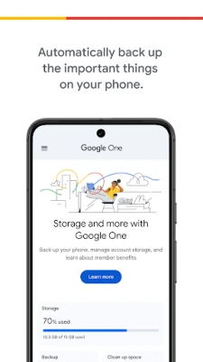Google One предлага лесно автоматично архивиране на данните от вашия телефон и централизирано управление на цялото ви Google облачно хранилище. Освободете място и пазете спомените си в безопасност с Google One.