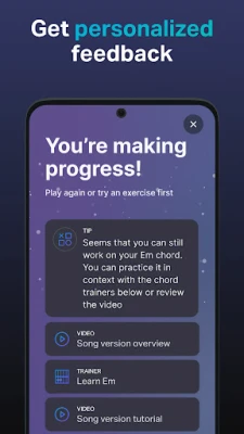 Освен като ненадминат тунер, GuitarTuna е и врата към необятен свят от музика. Открийте над 20 000 популярни песни от водещи световни изпълнители с професионални акорди и таблатури, съобразени с вашето ниво на умения. Независимо дали сте начинаещ или напреднал, приложението ви позволява да свирите в собствено темпо, докато акордите и таблатурите се синхронизират с вас. С интерактивни уроци, видео ръководства и персонализирана обратна връзка, вие ще изградите свой собствен път на обучение и ще подобрите свиренето си на китара стъпка по стъпка, обогатявайки репертоара си с нови композиции всяка седмица.