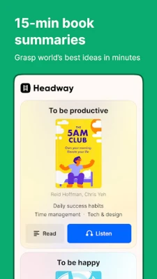 Уморени ли сте от безсмислено скролване? Искате да прекарвате времето си по-смислено? Headway е иновативно приложение за микрообучение, което трансформира 10 минути от деня ви или 20 минути свободно време в лична революция за самоусъвършенстване.