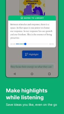 С Headway получавате достъп до библиотека от над 2000 заглавия, включващи ключови концепции от световни нехудожествени творби в области като продуктивност, богатство, емоционална интелигентност, лидерство, самочувствие и комуникация. Независимо дали предпочитате да четете кратки резюмета или да слушате висококачествени аудио версии, подобни на подкасти, Headway се адаптира към вашия ритъм – идеален за ежедневно пътуване или кратки почивки. Всяка идея е прецизно обработена от екип от професионални писатели и редактори, гарантирайки най-доброто микрообучение.