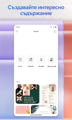 Независимо къде се намирате, **Microsoft 365 Copilot** ви осигурява пълен контрол върху вашата цифрова информация. Сканирайте с лекота документи, снимки и бележки директно с мобилното си устройство. Намирайте бързо важните файлове – онзи стратегически набор от слайдове от миналия месец, семейна снимка или прикрепен към имейл документ – всичко е на един клик разстояние. Качвайте лесно Word, Excel или PDF файлове от паметта на телефона си, за да получите мигновени отговори от вашия асистент, и съхранявайте генерираните от него резултати директно на устройството си.