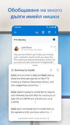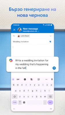 Но Outlook за Android е много повече от просто пощенски клиент. Той обединява вашия имейл, календар и файлове в едно интегрирано пространство, елиминирайки нуждата от превключване между различни приложения. Планирайте срещи, проверявайте наличността си или прикачвайте документи от облачното си хранилище директно от папката "Входящи" само с няколко докосвания. Тази безпроблемна свързаност, включително интегрирането с Word, Excel и PowerPoint, превръща вашия мобилен телефон в мощна работна станция, готова да се справи с всяка задача, където и да сте.