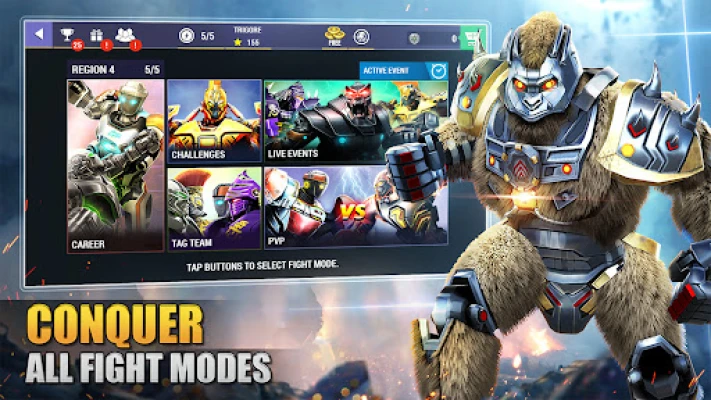 Потопете се в адреналиновия свят на Unleash your inner Champion – върховната игра с роботи-бойци, която превръща всеки дуел в зрелищна демонстрация на сила и стратегия. Присъединете се към хиляди играчи от всички краища на света и проправете своя път през безмилостни арени, за да се утвърдите като безспорен шампион в това епично продължение. Пригответе се за битка, където само най-добрите оцеляват и доказват своите умения.