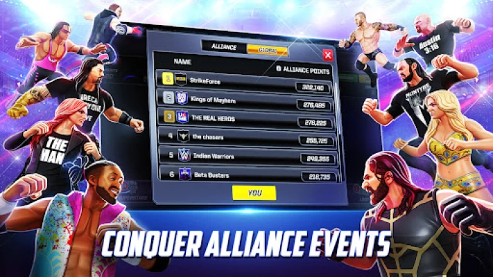 Изградете своя мечтан отбор от борци, като стратегически събирате и развивате любимите си Суперзвезди, за да отключите мощни синергии, вдъхновени от Вселената и Шампионатите на WWE. Разгърнете потенциала на шест различни класа – Здравеняк, Въздушен атлет, Мощник, Техникар, Непредсказуем и Шоумен – всеки от които предлага уникални бойни предимства и характерни стилове. Участвайте в епични събития като седмичните шоута RAW, NXT и SmackDown Live, или се включете в отборни битки, синхронизирани с реалния свят на WWE.